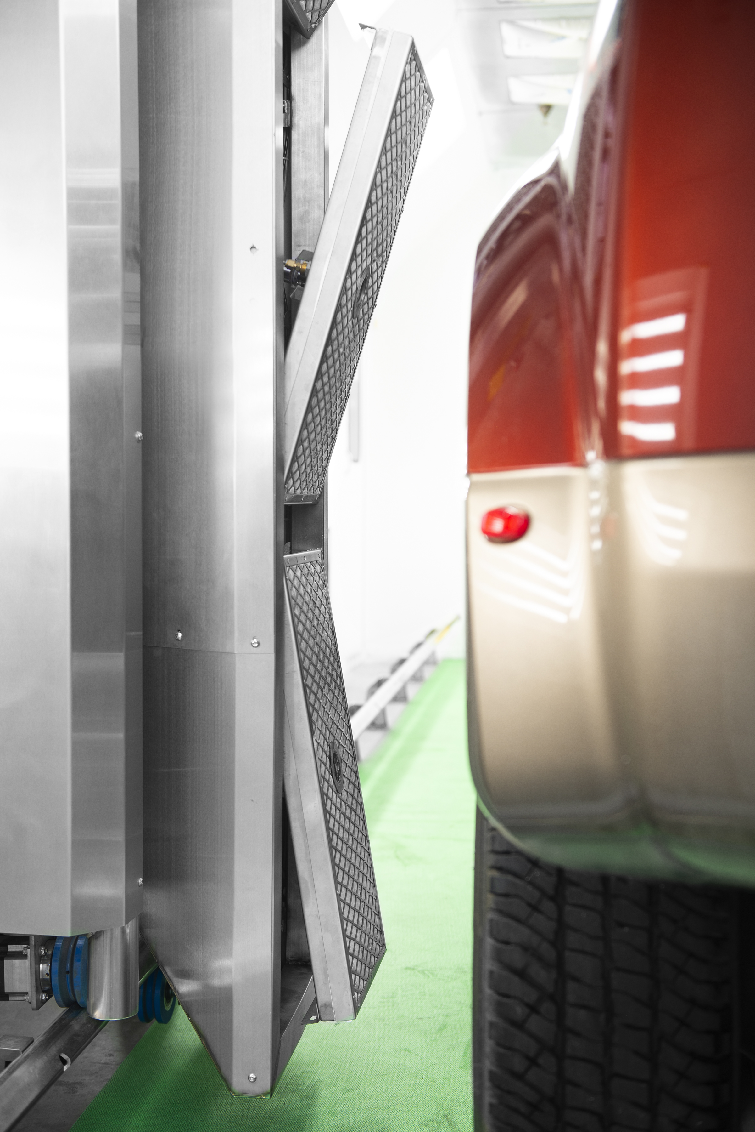 “我們的龍門框架可以安裝在汽車車身車間的噴漆室中,沿著地面上的兩條軌道運行。”U.S. Autocure工程師Mark Abel說道,“當龍門框架前后掃描時,裝有紅外加熱燈的吊桿會上下移動,以適應車輛高度的變化。同時,框架兩側裝有加熱器的百葉窗會按照預編程的順序折疊和展開,以適應車輛的外形輪廓。這也可以實現自動化運行,其中每側的攝像機也會上下移動,讀取車輛的寬度和高度并將定位數據發回控制器?!?/p>